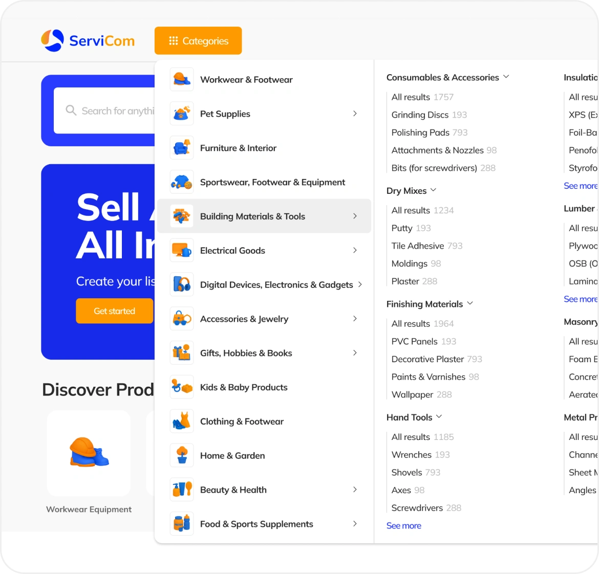 Få allt du behöver på ett ställeAll produktinformation, priser, villkor och tillgänglighet samlas på en enda plattform, vilket eliminerar behovet av att söka på flera webbplatser. Du kommer endast att arbeta med verifierade företag, vilket garanterar säkra köp för kunder och rättvis konkurrens för säljare.